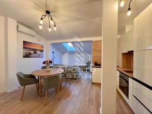 Penthouse situat in zona Torontalului, in bloc nou cu suprafata utila de 85 mp si terasa de 38 mp, amplasat la etajul 7 intr-un imobil cu lift. Este compartimentat in doua dormitoare, dressing, doua bai cu geam, living generos si bucatarie separata. Apartamentul este nelocuit, complet mobilat, cu finisaje ...