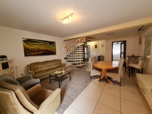 IM Imobiliare inchiriaza casa tip duplex la intrarea in comuna Sinandrei. Imobilul a fost construit pe 3 nivele ( parter + etaj+ mansarda) si are in folosinta 150 mp utili. Compartimentarea este de tip decomandat. Confortul termic este asigurat de sistemul de incalzire cu centrala pe gaz si a aparatului ...