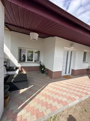 Casa din caramida și lemn, pe un singur nivel, acoperita cu tabla de tip Lindab, edificata pe un teren de 1500 mp ( din acte) plus 500 mp în folosință. Suprafata casei este de 242 mp, dispune de un salon generos, 3 dormitoare, 2 bai, bucătărie, hol și camera centralei. Terasa exterioara din lemn, amenajata ...