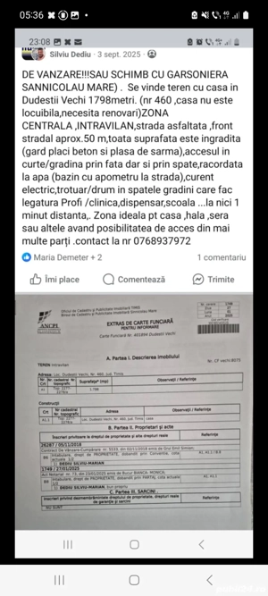Teren cu casa (nelocuibila sau pt renovare),teren intravilan,ZONA CENTRALA,racordata la apa ,curent ,1798m,strada asfaltata ,intrare din ambele parti (fata si spate),imprejmuita cu gard placi beton si plasa sarma