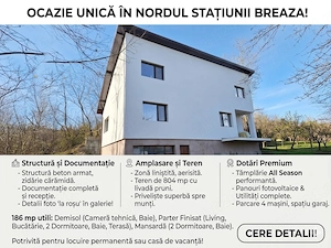 În nordul stațiunii Breaza, într-o zonă liniștită și aerisită, vă prezentăm o proprietate realizată cu atenție la detalii și materiale de calitate superioară. Construită sub supravegherea directă a proprietarului, casa se remarcă prin structură solidă, execuție corectă și documentație completă. Construcție ...